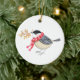 Ornamento De Cerâmica Cute Chickadee with Golden Sprig Personalized name