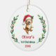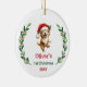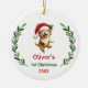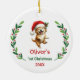 Ornamento De Cerâmica Cute Custom Baby's First Christmas Festive Puppy