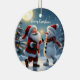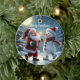 Ornamento De Cerâmica Cute Santa and snowman dancing on ice in winter