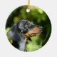 Ornamento De Cerâmica Dachshund 3, Miniatura Preta e Branca