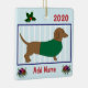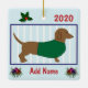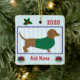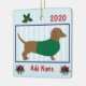 Ornamento De Cerâmica Dachshund Personalizado - Doxie Puppy Dog -Green