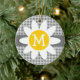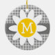 Ornamento De Cerâmica Daisy on Cinza Gingham