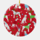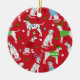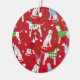 Cães de Natal bonitos em roupas festivas de férias. Dalmático com casacos pretos e brancos veste chapéus de Santa, galhadas, suéteres em um fundo de férias com ornamentos dispersos.