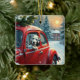 Ornamento De Cerâmica Dalmatian Snowy Car Ride Christmas Painting