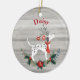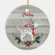 O Rústico Ornament Cerâmico Dalmático de Natal, Antlers Greenery, será o ponto alto da sua árvore. Um Dalmacioso vestindo ornamentos em suas pretensas galhadas parece que ele está olhando para Papais noeis. Belo ambiente de Natal, sagrado, pinheiro e poinsettia em vermelhos de Natal e verdes decoram o fundo do ornamento. Tudo isso em um fundo de textura rústica de madeira de cinza. Mude o nome do cão para o seu filhote. A parte de trás do ornamento tem uma coroa de verde igual em uma textura de papel kraft de cinza e tem o ditado "Happy Howlidays e também "Anderson Humans" e o ano para editar e fazer dele seu próprio. Este texto, assim como todo o texto deste ornamento, é editável com a ferramenta personalizar. Torne seu Dalmaciano orgulhoso e faça com que vários deles se espalhem pela sua árvore. Este ornamento, assim como guardanapos e placas de papel correspondentes para as suas festas de férias estão na nossa COLEÇÃO "HELY HOWLIDAYS DOG" em nossa loja.