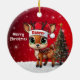 Dancer! Celebrate the holiday season with this festive round ceramic red ornament featuring an endearing woodland forest animal cartoon graphic of a cute baby reindeer wearing a Santa hat, and Merry Christmas written in white. Perfect deer with antlers for decorating your tree or as a thoughtful gift, this whimsical doe decor makes a cherished keepsake for years to come. Customize by changing the text, the font, the font color, or remove the text. You can even transfer this design onto other products. Enjoy this design your way! Check out ForestBabies Xmas Deer Collection for matching decorations. 🎄🦌