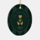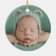 Dark Green Tartan Plaid Babys First Christmas Ceramic Ornament - with a classic teddy bear, Baby's first Christmas ornament, baby's name and year, surrounded by a border of classic dark green tartan plaid. A photo of your bundle of joy is featured on the other side in full bleed. What a wonderful keepsake this ornament would make.