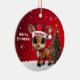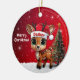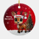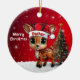 Dasher! Celebrate the holiday season with this festive round ceramic red ornament featuring an endearing woodland forest animal cartoon graphic of a cute baby reindeer wearing a Santa hat, and Merry Christmas written in white. Perfect deer with antlers for decorating your tree or as a thoughtful gift, this whimsical doe decor makes a cherished keepsake for years to come. Customize by changing the text, the font, the font color, or remove the text. You can even transfer this design onto other products. Enjoy this design your way! Check out ForestBabies Xmas Deer Collection for matching decorations. 🎄🦌