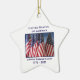 250º Aniversário de 1776 a 2026, Estados Unidos da América, Ornamento de Árvore de Natal. Texto da Declaração de Independência - todos os homens são criados iguais, que são dotados pelo seu Criador com certos Direitos Inalienáveis, que entre eles estão a Vida, a Liberdade e a Busca da Felicidade. Um marco excelente para os EUA! Foto de bandeiras americanas acenando ao vento, e texto patriótico faz disso um maravilhoso guardião - uma vez na vida! Ornamento em forma de estrela premium de Natal excelente. Todos os Direitos Reservados © 2025 Alan & Marcia Socolik.