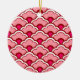 Ornamento em escala chinesa ou padrão de onda, tradicional em trabalho têxtil e esmalte, em cor-de-gelo leve, cor-de-rosa fuchsia profundo e branco, com acentos de marrom