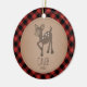Ilustração de um veado buck com botão de bebê com um estoque de papelão marrom inspirou fundo e uma borda de xadrez de búfalo vermelha e preta. Personalizar o nome e o ano