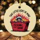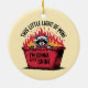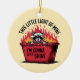 Celebre as festas de fim de ano com um toque de humor com este enfeite de Natal único, apresentando um guaxinim travesso sentado em um fogo de container festivo e a frase "Esta pequena luz minha, vou deixá-la brilhar". Este enfeite é perfeito para adicionar diversão leve ao seu enfeite de Natal ou presentear amigos e familiares que apreciam um pouco de sarcasmo sazonal.