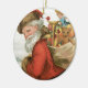 Ilustração vintage de Natal vitoriano com um Papai Noel antigo carregando um saco de brinquedos ao lado de um menino.