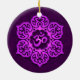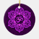 Um Aum ou um OM projetam sentam-se dentro de uma flor de lótus estilizado. O teste padrão circular é colorido com uma violeta profunda que seja destacada para criar um brilho claro na superfície. O fundo é o roxo escuro pintado que pode ser considerado através do espaço negativo da flor. Uma sombra aparece apenas abaixo do design que faz o parece flutuar apenas acima da superfície do ornamento. Este design à moda é uma representação impressionante deste símbolo espiritual.