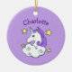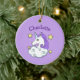 Ornament cerâmico do Design Unicorn com texto personalizável e cor de fundo.