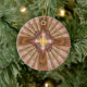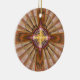 Aqui você vê uma imagem do fractal na forma de uma cruz com alternar listras alaranjadas e brancas no fundo. Este ornamento é perfeito para qualquer um que está interessado em trabalhos de arte cristãos ou religiosos.