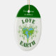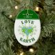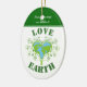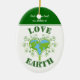 Ornamento personalizado do Dia da Terra que apresenta o planeta Terra em um coração e espirais.