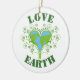 Ornamento personalizado do Dia da Terra que apresenta o planeta Terra em um coração e espirais.