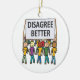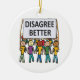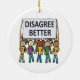 Discordo Melhor mostra uma multidão de pessoas marchando sob uma faixa de solteiro. Porque o debate, o discurso e o diálogo são melhores do que ficar zangados. Este grupo está a trabalhar nas suas diferenças sob um objetivo comum - discordar melhor!