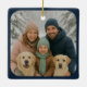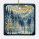 Este ornamento de árvore de feriado apresenta uma elegância clássica única. Ele apresenta um design na moda inspirado por Gustav Klimt, mostrando uma cena da floresta abstrato de inverno em uma paleta de cores vibrantes. Na frente, há espaço para seu nome de família e ano até hoje, e no verso, você pode personalizá-lo com uma charmosa foto de inverno de sua escolha. Este ornamento é perfeito para quem aprecia temas artísticos relacionados a férias de inverno e dezembro. Ele faz um presente lúdico ideal para amigos ou família. Com seu estilo original, clássico e chic, este ornamento certamente trará sorrisos para os rostos de seus entes queridos.