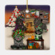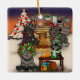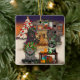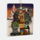 Cães de cachorrinho da Terra Nova, lindamente desenhados e coloridos, festejados em uma comemoração do RV de férias, completos com uma fogueira, árvore de Natal gigante, luzes e até refrescos!