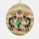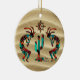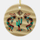 Personalize este Enfeites de natal "Um dos tipos" do sudoeste de Kokopelli! Ele apresenta dois Kokopelli sudoeste em Turquoise, laranja e preto tocando flauta e dançando ao redor de um cacto...Sob o Sol num Fundo de Areia! Design De Arte Original Pelo Artista Kerry Miller.