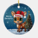 Donner! Celebrate the holiday season with this festive round ceramic red ornament featuring an endearing woodland forest animal cartoon graphic of a cute baby reindeer wearing a Santa hat, and Merry Christmas written in white. Perfect deer with antlers for decorating your tree or as a thoughtful gift, this whimsical doe decor makes a cherished keepsake for years to come. Customize by changing the text, the font, the font color, or remove the text. You can even transfer this design onto other products. Enjoy this design your way! Check out ForestBabies Xmas Deer Collection for matching decorations. 🎄🦌