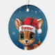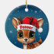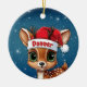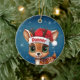 Donner! Celebrate the holiday season with this festive round ceramic red ornament featuring an endearing woodland forest animal cartoon graphic of a cute baby reindeer wearing a Santa hat. Perfect deer with antlers for decorating your tree or as a thoughtful gift, this whimsical doe decor makes a cherished keepsake for years to come. Customize by changing the text, the font, the font color, or remove the text. You can even transfer this design onto other products. Enjoy this design your way!🎄🦌