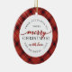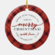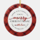 Este ornamento é o presente perfeito para seus amigos e família, adicione seu próprio nome e crie seu pequeno e perfeito enchedor de estoque! Este design apresenta um fundo vermelho, preto e xadrez dourado com uma tipografia redonda que diz "da nossa família à sua, Feliz Natal". A inscrição é feita em uma mistura de texto tradicional de todos os bonés e um roteiro elegante e elegante com a mesma xadrez vermelha e preta.