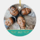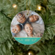 Ornamento De Cerâmica Dourado Teal de Foto Personalizado 2 Foto Da Famíl