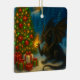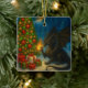 Cool Black Dragon on Christmas Day by a tree and gifts, Holiday Ceramic Ornament.