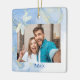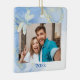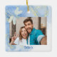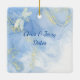 Padrão moderno, mas elegante, de espiral azul Dourada com os ornamentos de Natal das Dragonflies para sua foto favorita na frente juntamente com o ano, O verso apresenta seus nomes e datas ou qualquer informação que você queira adicionar. presente de Natal excelente para aqueles que você se importa ou para você mesmo, ou para se lembrar do seu dia de casamento ou apenas da sua foto favorita do ano.