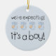 Meninos bonitos, embrulhados em cobertores azuis com o texto, "Estamos esperando! É um menino!" Perfeito por pais grávidos e esperando que saibam que um menino está a caminho.