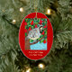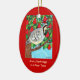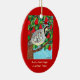 Baseado na canção de natal conhecida do Natal, "os 12 dias do Natal," esta imagem lunática caracteriza uma perdiz gorda bonita, vestindo um chapéu do feriado, sentando-se em um cheio alto-detalhado da árvore de pera de peras do vermelho de Christmasey. Esta versão do ornamento inclui o texto "e uma perdiz em uma árvore de pera."