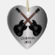 Black, electric guitars, Christmas tree ornament for a musician. Silver, heart-shaped, double-sided ornament with a photo template on the back. Customize with the year.