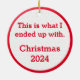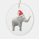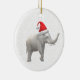 A design apresenta a imagem de um elefante branco vestindo um chapéu de Papai Noel contra um fundo verde e vermelho manchado na frente. Texto personalizável em vermelho brilhante ao contrário. Projetado para coordenar com a "Coleção de Festas de Natal de Elefante Branco"\.
