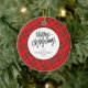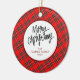 Ornamento De Cerâmica Elegant Modern Red Plaid Christmas Family Photo
