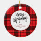 Ornamento De Cerâmica Elegant Modern Red Plaid Christmas Family Photo