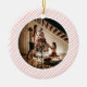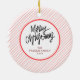 Ornamento De Cerâmica Elegant Modern Red Stripes Christmas Family Photo