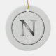 Ornamento De Cerâmica Elegant 'N' Monogram Noel Silver Line Border