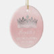 Ornamento De Cerâmica Elegant Photo Silver and Blush Pink Quinceanera