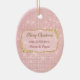 This elegant ornament features a gold ballerina in pose against a pretty jewel like pink background with tiny star lights. Her name is in dark gold on a semi transparent banner that is framed in gold. The back of the ornament has the same pink background with three custom text fields at the center of a fancy gold framed banner. Beautiful, and something she will always treasure.
