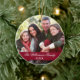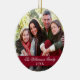 Ornamento De Cerâmica Elegant Script 2 Sided Photo Christmas Burgundy