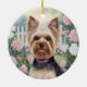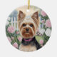 Ornamento De Cerâmica Elegant Yorkshire Terrier Rosa Garden Painting