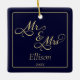 Celebre o seu primeiro Natal junto com este belo ornamento do Sr. e da Sra. cerâmica! Apresentando "Sr. & Sra." em um belo roteiro de caligrafia em ouro em um rico fundo azul da meia-noite, e personalizável com sua foto, nome e ano, este ornamento é uma bela manutenção e também faz um maravilhoso presente personalizado para um novo casal.