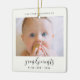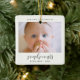 Uma caligrafia elegante e um design moderno para este presente de ornamento fotográfico. Para personalizar com sua foto favorita de bebê. Você também pode mudar facilmente a cor da fonte para seu gosto. Perfeito para celebrar seu Primeiro Natal como novos avós.