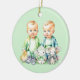 Anúncio de nascimento ou de gravidez. Enfeites de natal de temas azul e verde, bonito, com dois gêmeos em azul e verde. O anúncio dos gêmeos. Personalizada a data de vencimento no verso.