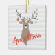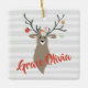 Traje Whimsical Personalizado de Natal Com Ornadores de Árvores de Ricaso - fácil de personalizar com seus próprios detalhes - desenhado com um belo emblema com decorações de férias em suas galhadas - e apresentado em um fundo de padrão listrado de cinza - uma bela marca de férias