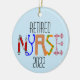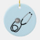 Enfermeira reformada, ornamento cerâmico '2022', na frente, e um estetoscópio preto no verso.