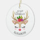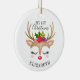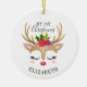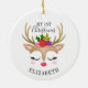 Um rosto bonito de rena decora este ornamento com as palavras Meu Natal de 1rua e personalizado com um nome. Divertido para uma menina no primeiro enfeite de Natal. Projetado para você pelo Blackberry Boulevard.